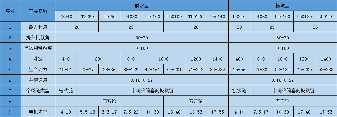 4、具有規(guī)格多、輸送量大、提升高度高、運(yùn)行平穩(wěn)、壽命長(zhǎng)、環(huán)境污染少。